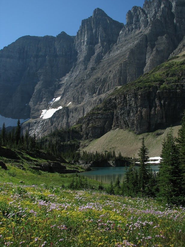 No. There were kids on it. But it was basically the same thing as the road, only narrower and with no rocks between you and the fall. And they said, “You’ll see great mountain goats up there, and you’ll get great views up there, and everyone should do this trail.” But the thing was, the other trail that we picked, we saw mountain goats, we saw beautiful views. Yes, it was a trail that children and old people were also on. But, who cares? It was so beautiful. Wildflower meadows and frolicking animals, sparkling lakes. They call the area the American Alps.